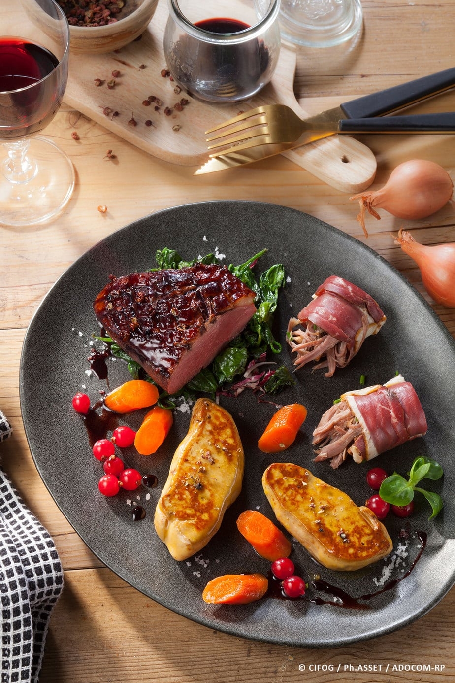 Contamos con la certificación IGP para el foie gras de pato del suroeste para los siguientes productos: foie gras de pato fresco, pechuga de pato, aiguillettes, patas confitadas, foie gras de pato entero esterilizado.